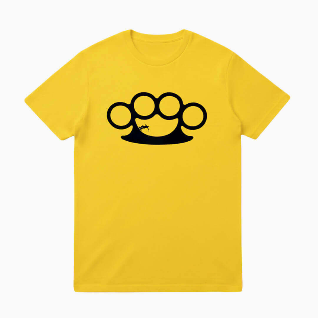 O amarelo é uma cor de destaque total. Para equilibrar o look, combine-a com calças jeans de lavagem clara ou bermudas pretas para um contraste clássico de rua. Como visto na foto do modelo, ela funciona muito bem sozinha, sendo o ponto focal do seu visual. Complete o kit com um de nossos bonés aba reta para um estilo skate completo.